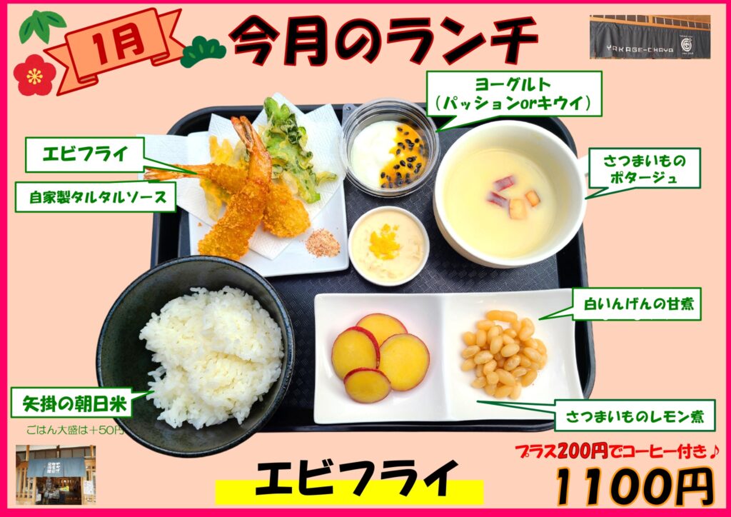 やかげ茶屋 2026年1月のランチは「エビフライ」♪