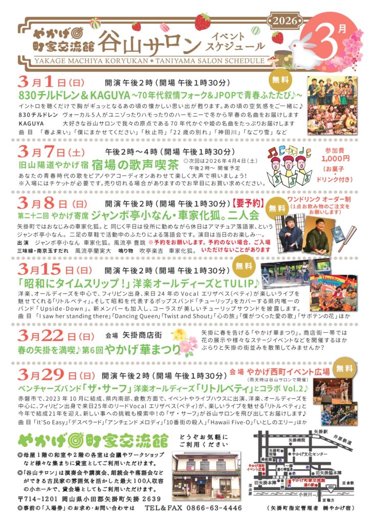 3月も谷山サロンではフォークソングやベンチャーズバンド、落語など様々なイベントを開催します♪